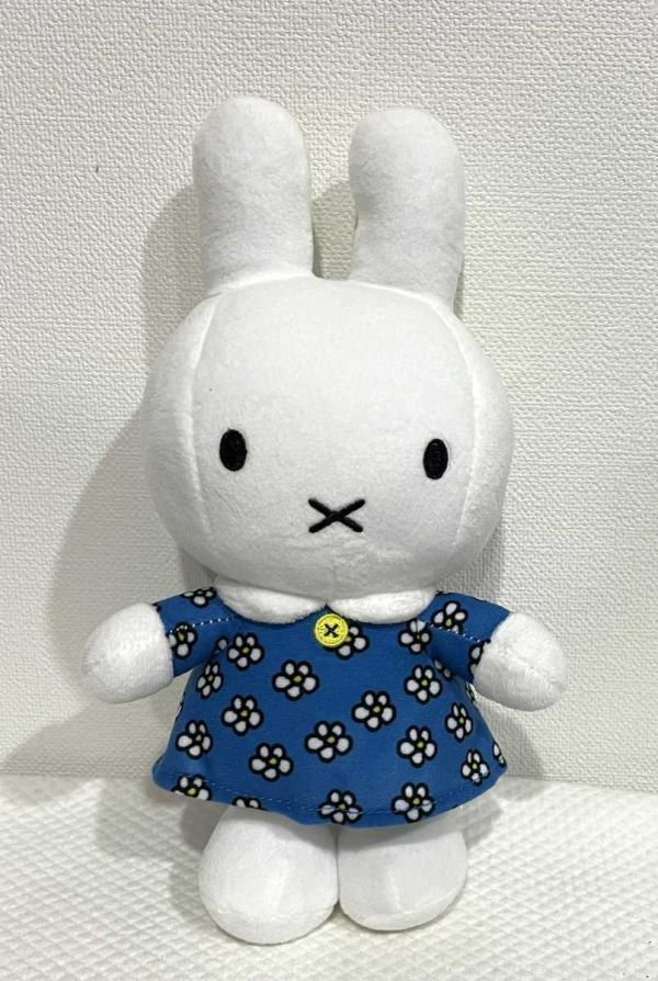- 【miffy ミッフィー】ブルー 花柄 ワンピース ドレス ぬいぐるみ 全高約28cm 立ち姿 うさこちゃん タグ無し