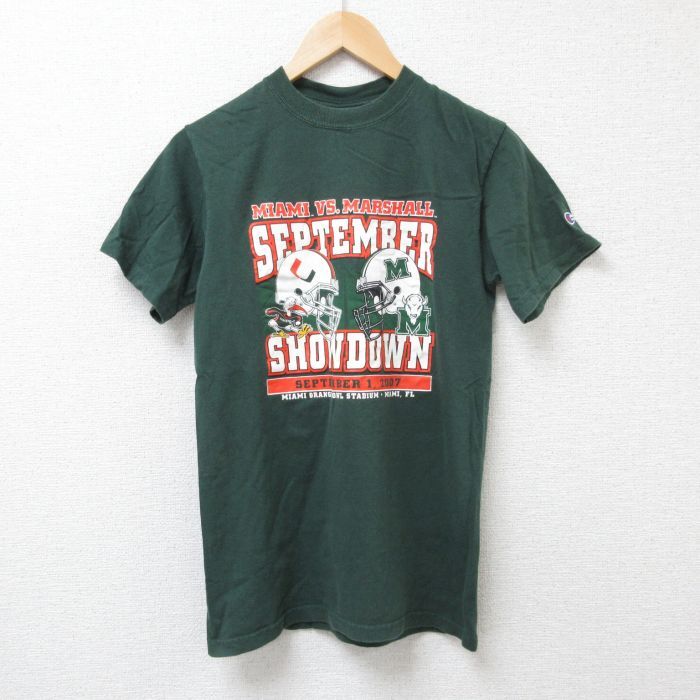 - S/古着 チャンピオン champion 半袖 ビンテージ Tシャツ メンズ 00s アメフト コットン クルーネック 濃緑 グリーン 25jun25 中古