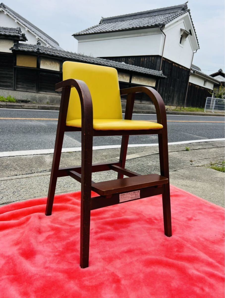 - 当時物/秋田木工 AKITA MOKKO/ベビーチェア/子供椅子/ハイチェア/アンティーク/曲木/ジャパンビンテージ/黄色 イエロー/ダイニングチェア①