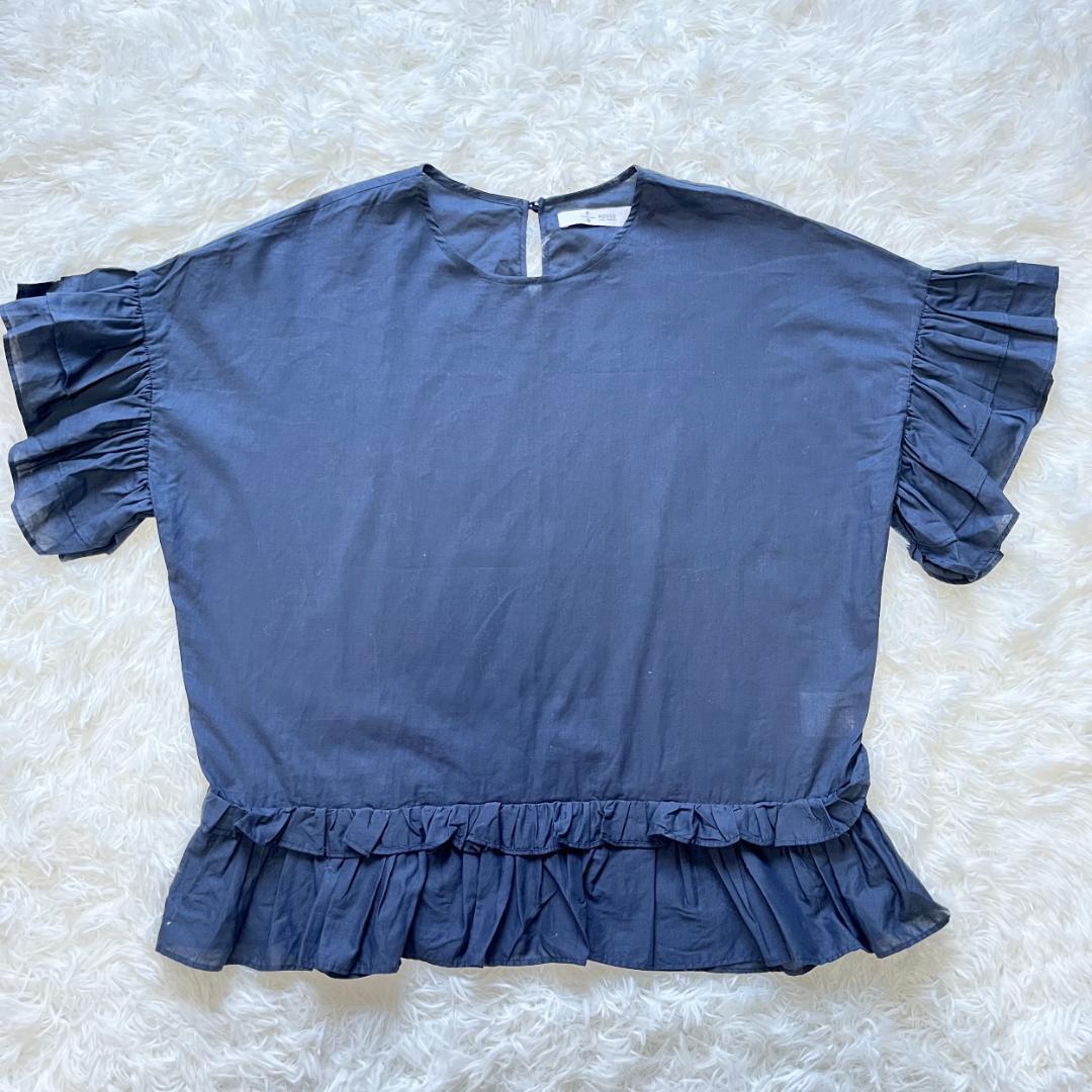 - ロッソ ブラウス フリーサイズ 日本製 袖フリル シンプル ブルー □