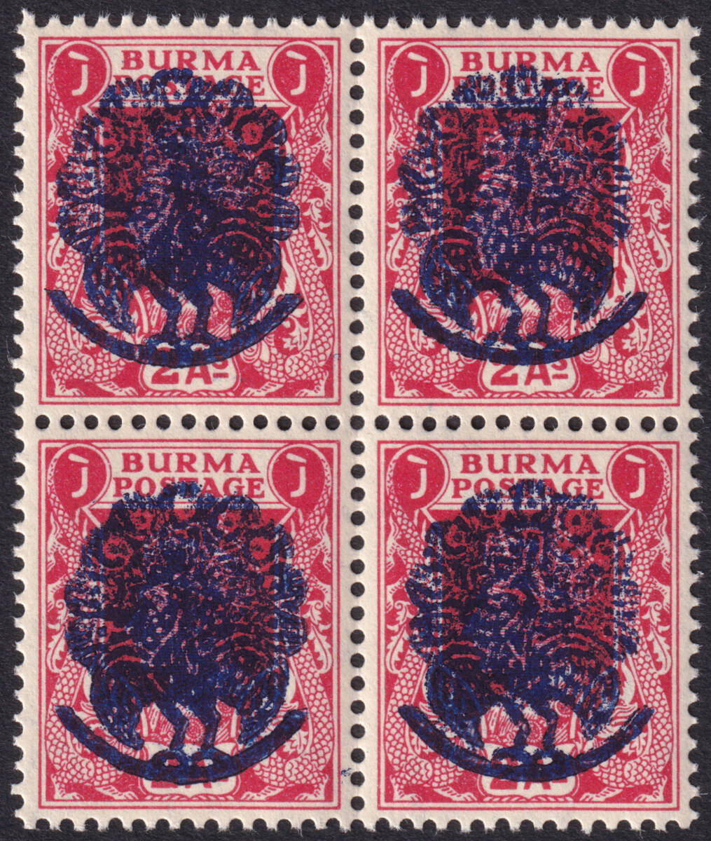 - 南方占領地切手 JPS:1B31 ビルマ 孔雀加刷 Ⅴ型 2A 田型 未使用 z13484