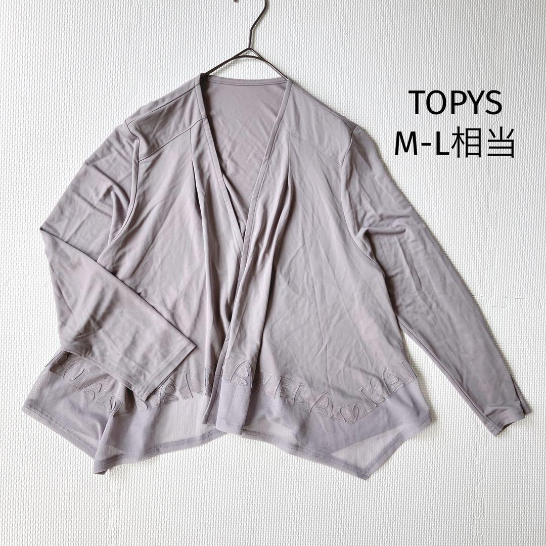 - トピィーズ TOPYS カーディガン【L相当】長袖 刺繍ロゴ グレー 透け感