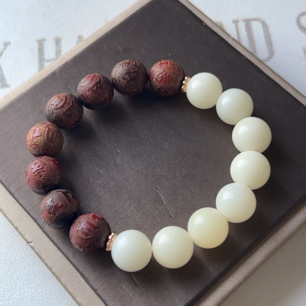 - ◇菩提樹の根◇白玉菩提+檀木(彫刻あり)◇ブレスレット◇数珠◇念珠◇巾着袋つき◇プレゼントにも030B62813