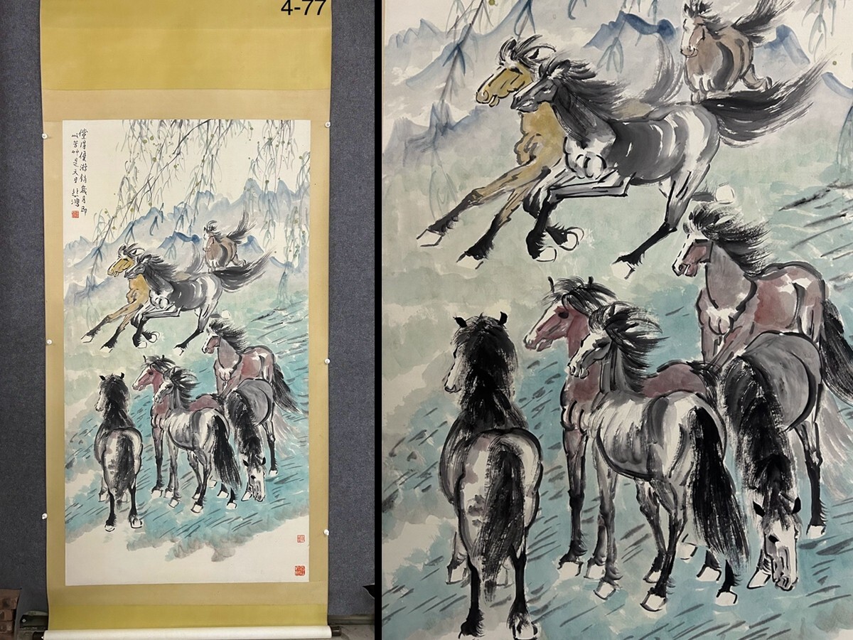 - 中国書画「徐悲鴻 八駿図」肉筆紙本 掛け軸 墨寶妙品 書画立軸 巻き物 古美術 旧蔵出