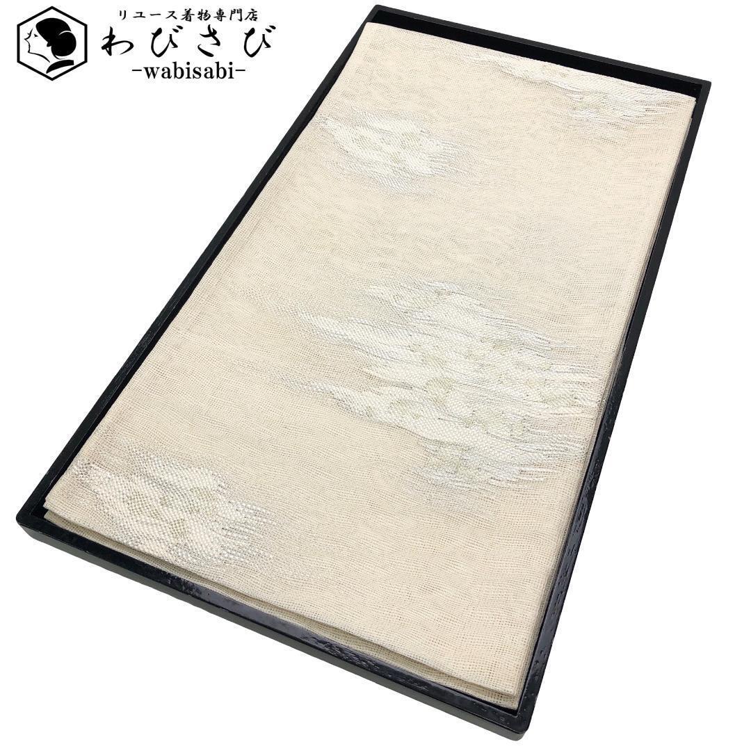 > 夏帯 袋帯 紗 霞模様 金銀糸 乳白色 O-5234 着物 きもの kimono 和服 和装 中古 リサイクル着物 【送料無料】