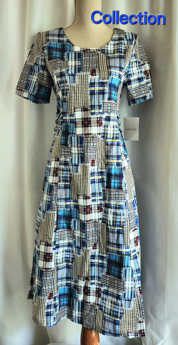 - 新品タグ付き Collection パッチワーク柄のワンピース 半袖ワンピース