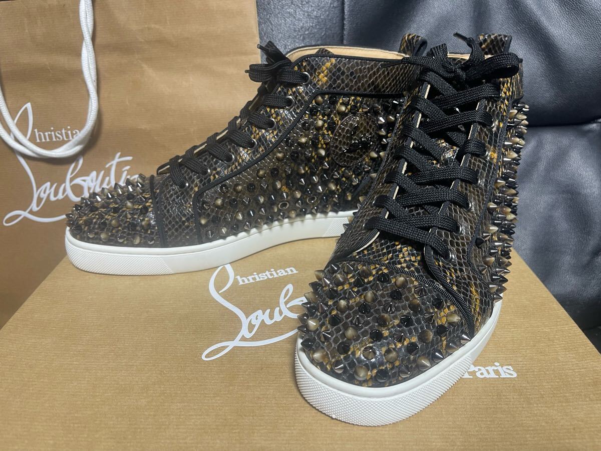 - 極上★CHRISTIAN LOUBOUTIN クリスチャンルブタン LOUIS SPIKES FLAT スパイクスタッズ パイソンレザー ハイカットスニーカー 43