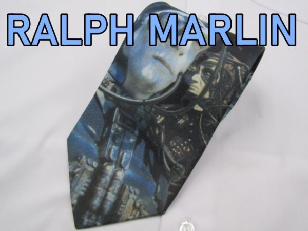 - 【スタートレック ボーグ】 E 628 ラルフマリン RALPH MARLIN ネクタイ 水色系 映画 プリント