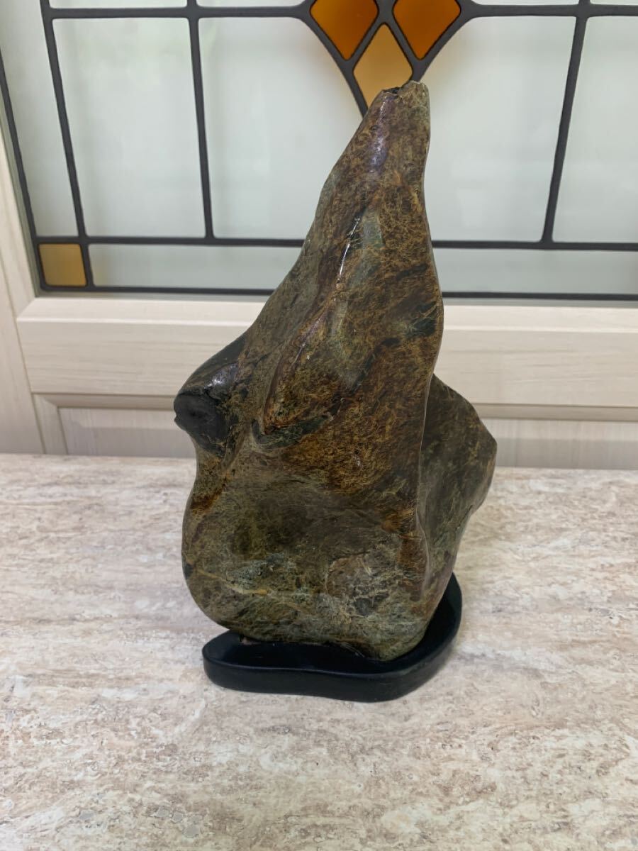 - 蛇紋石 蛇紋岩 蛇石サイズ(約) 縦 16cm/ 横 10cm / 高さ29 cm 自然石 台座付