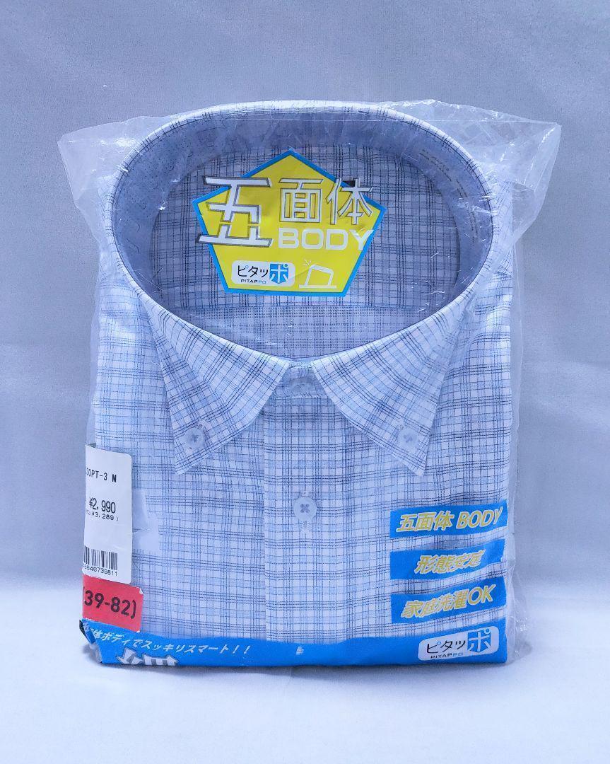 - 【新品 未開封品】五面体BODY ワイシャツ 形態安定 長袖 M サックスチェック 送料無料