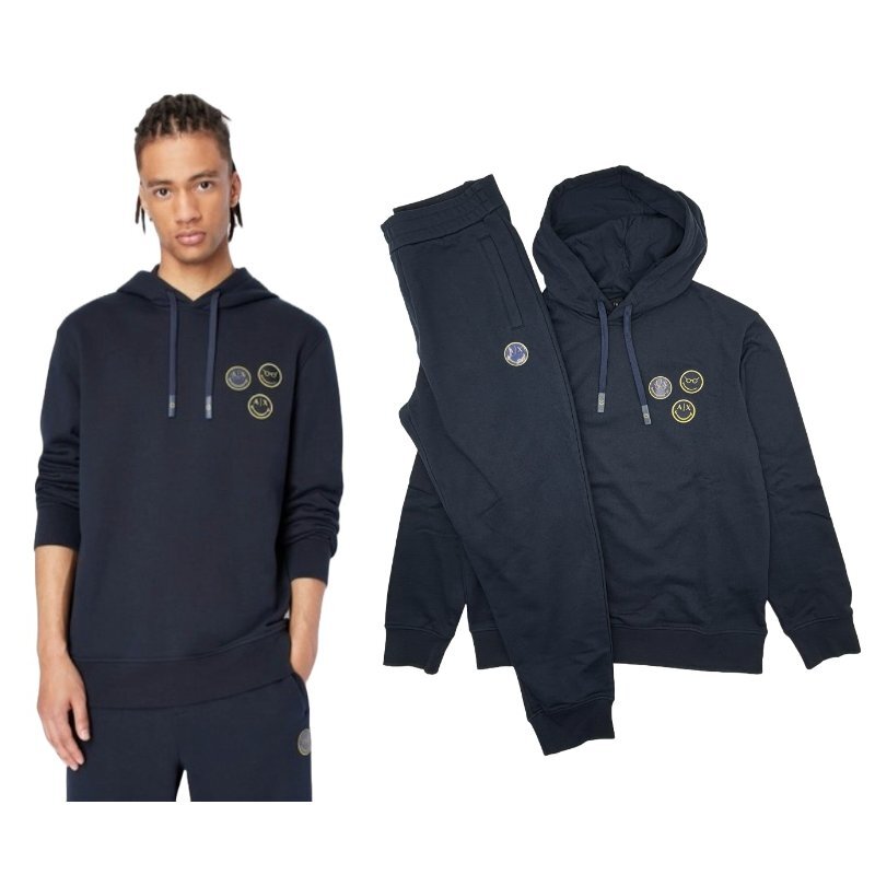 - 【上のみサイズ選択】新品◆A|X アルマーニ エクスチェンジ◆スマイリーワッペン付き スウェットセットアップ◆上下セット◆ネイビー/紺