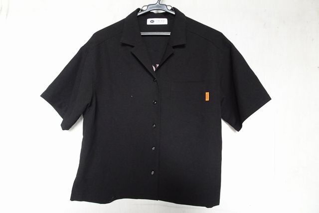- 179/WG/NICOLE CLUB/半袖シャツ/オープンカラーシャツ/左胸ポケット/バックししゅう/裾サイドスリット/黒/ブラック(6/30R7)