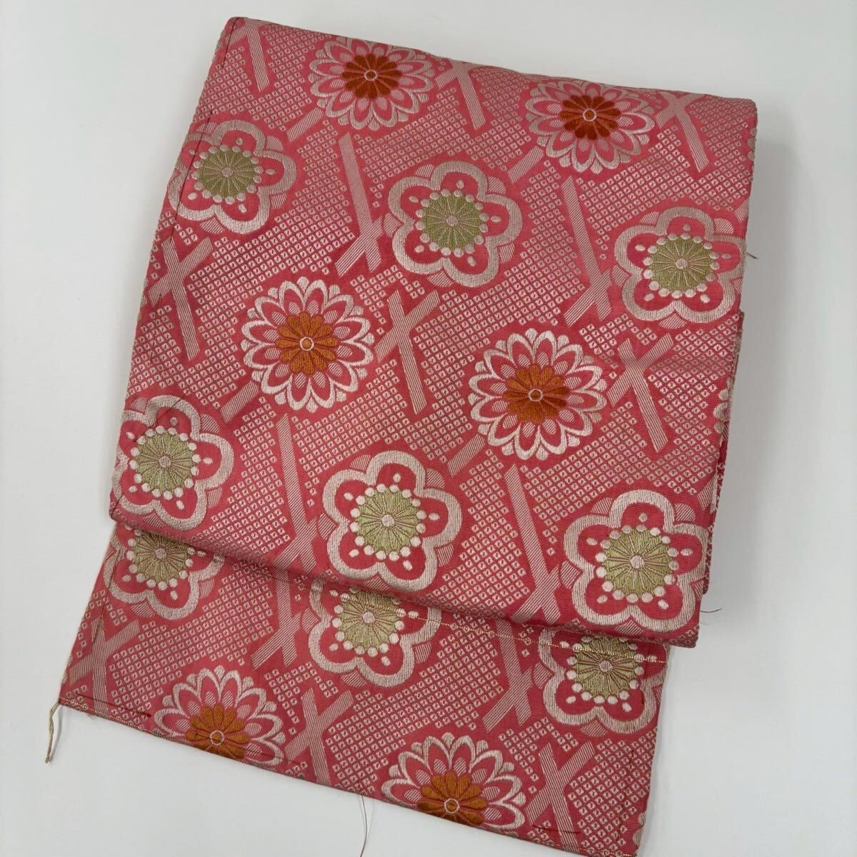 - アンティーク名古屋帯 全通 可愛い花柄 正絹 W-1700