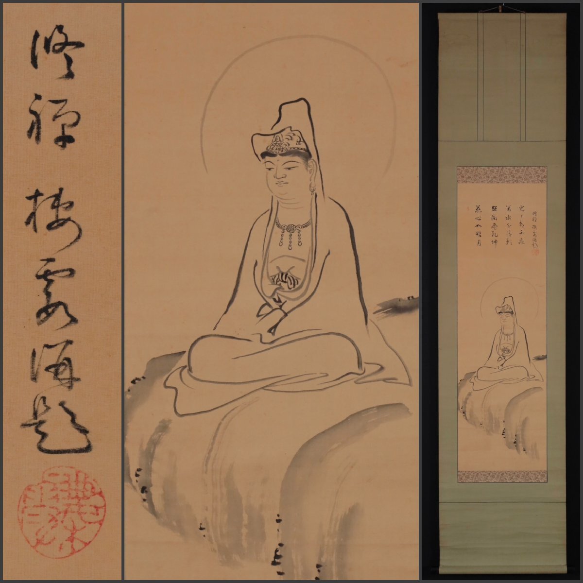 - 【模写】吉】12544 丘球学 観音像画賛 曹洞宗 可睡斎 西有穆山師事 棲霞 修禅寺 住職 永平寺 仏教 愛知県の人 書 掛軸 掛け軸 骨董品