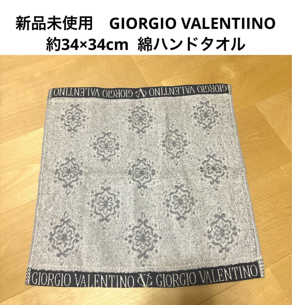 - 新品未使用 グレー タオルハンカチ 綿 ハンドタオル ジョルジオバレンチノ GIORGIO VALENTINO コットン アラベスク