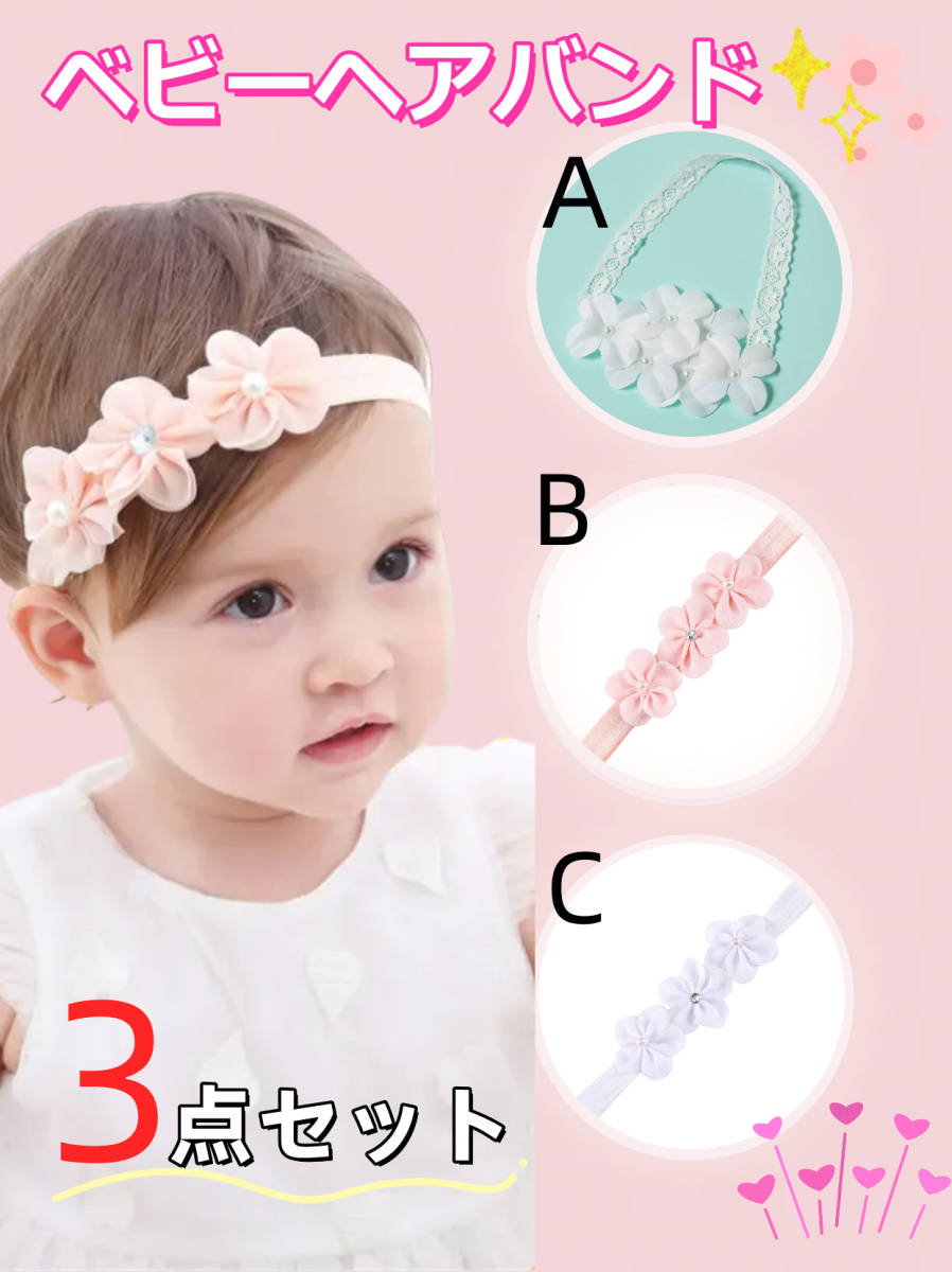- 赤ちゃんベビーヘアバンド ー《3点セット》 結婚式カチューシャ子供ギフト ベビーヘアアクセサリー出産祝い お祝い 女の子