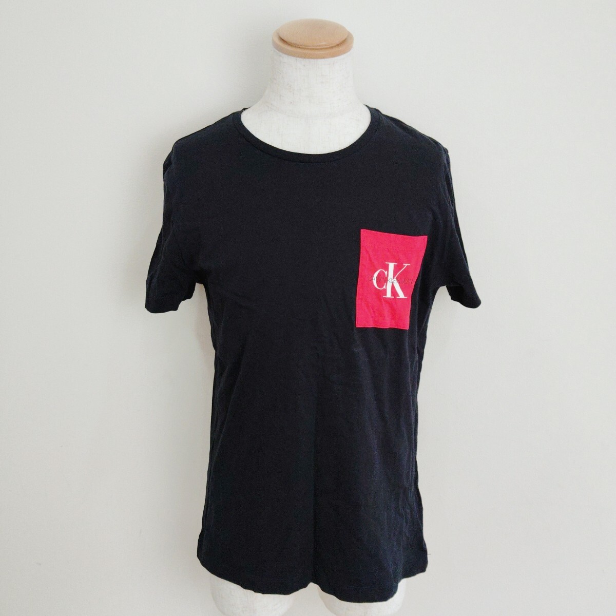 - 0701/M/CalvinKlein メンズ 半袖Tシャツ ポケット 無地 クルーネック 黒