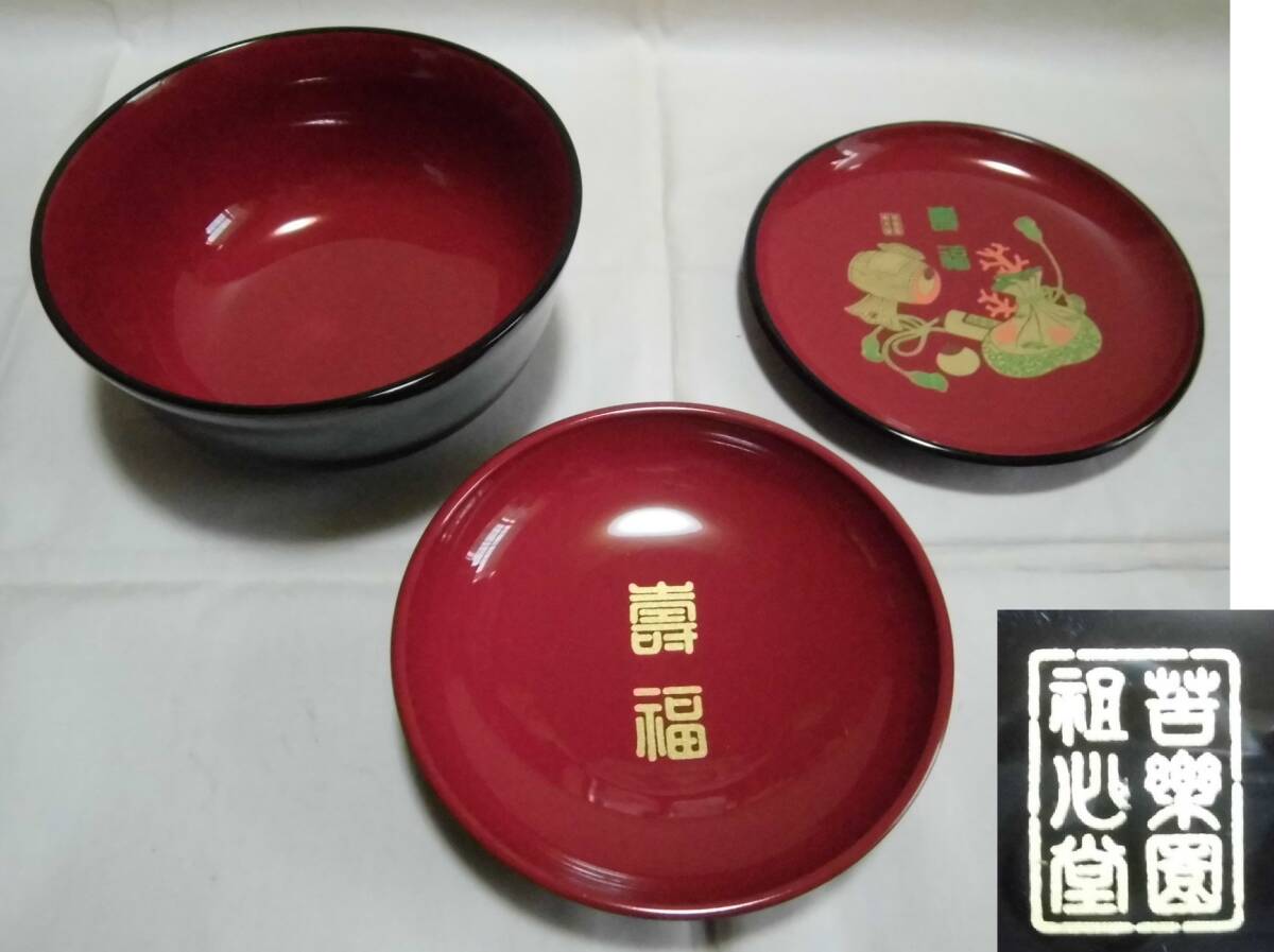 - 丼 蓋付 お皿付 苦楽園 祖心堂 寿福 多用椀 飯椀 金彩 朱塗 どっしり椀 合成漆器 飯器 食器