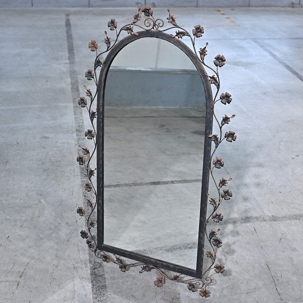> アールヌーボー様式 壁掛けミラー アイアンフレーム ウォール 鏡 花柄 装飾 フラワー ローズ リバティ ビンテージ_ロココ バロック