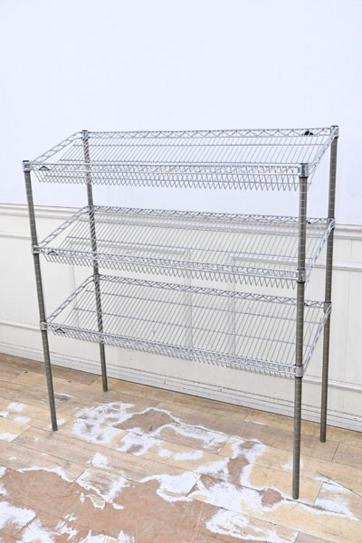 - FD062 業務用 10万円 エレクター エレクターシェルフ スランテッドシェルフ 3段 什器 斜め棚 パンフレットラック メタルラック 幅121cm