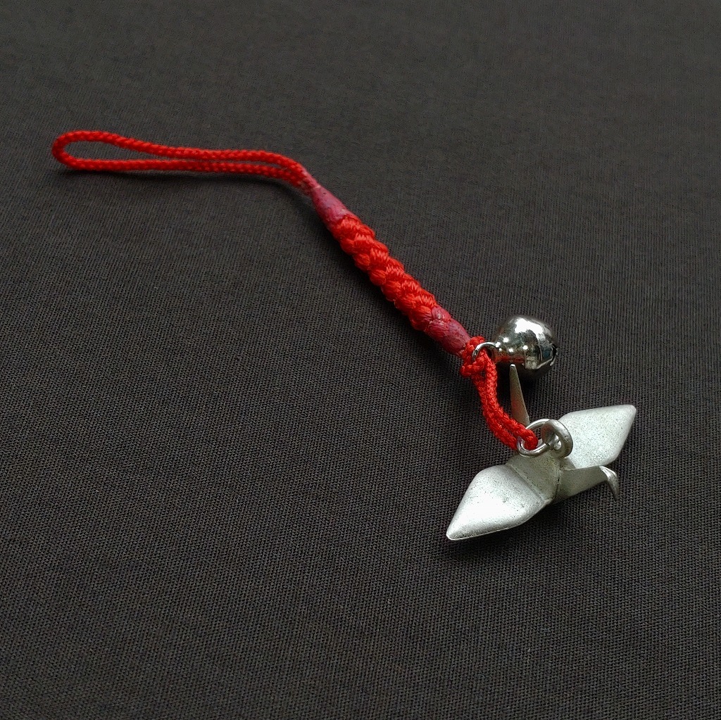 - 根付 お守り 折鶴 金属製 鶴岡八幡宮 【6175】