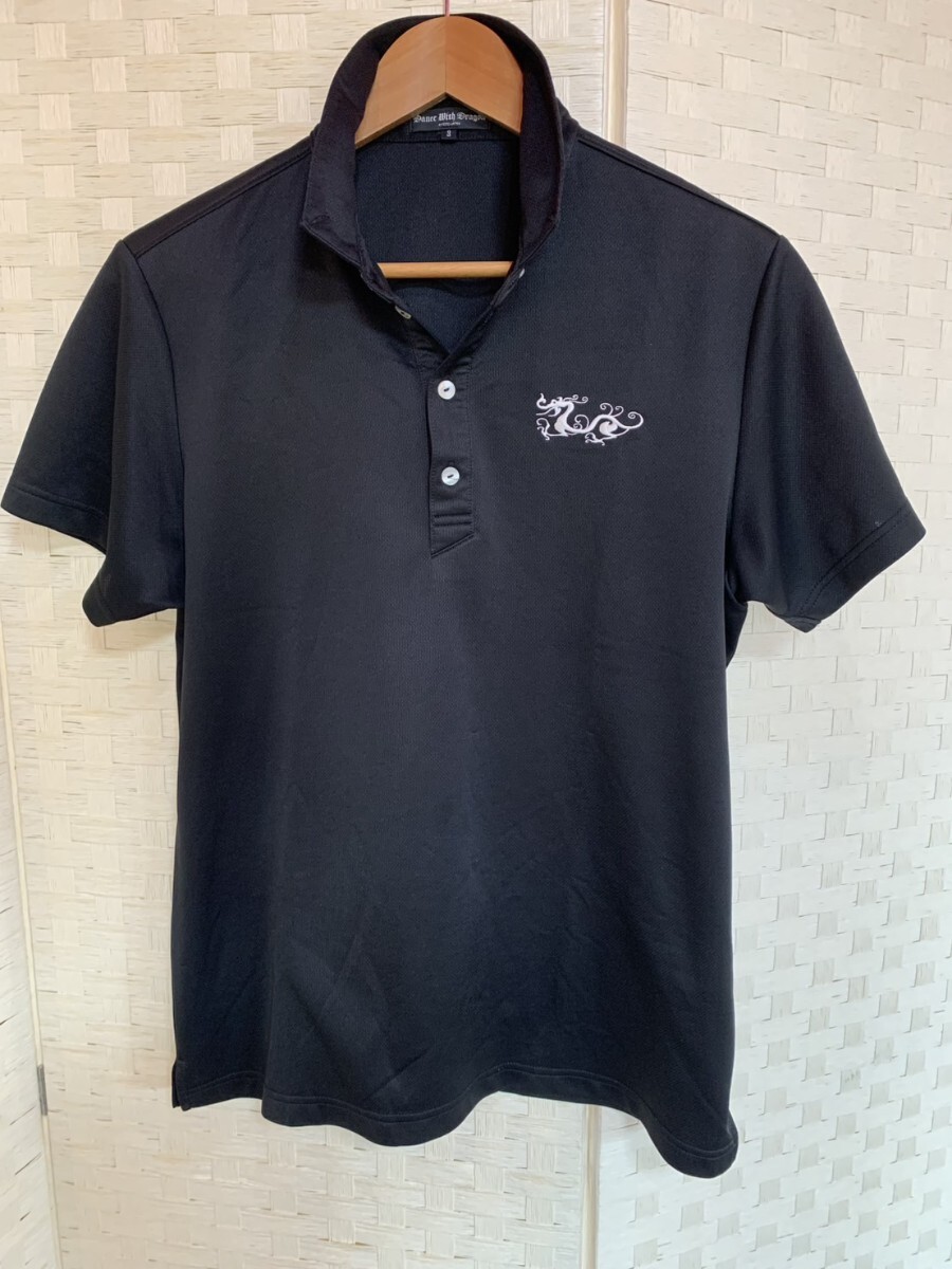 - Dance With Dragon メンズ 半袖ポロシャツ ゴルフウェア ブラック サイズ3 背面DRAGONプリント ストーン付き