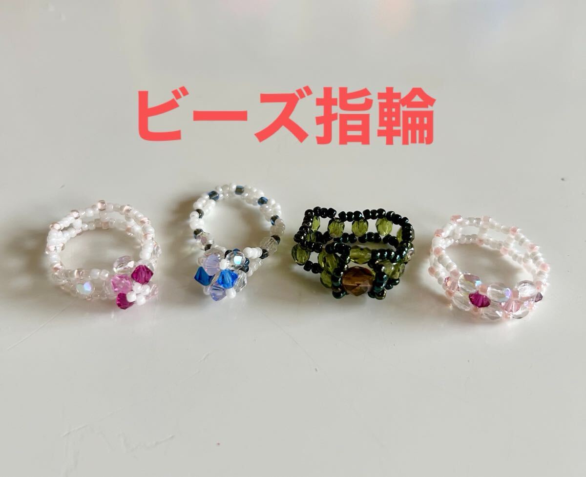 - 【ハンドメイド】ビーズリング 4点セット ハンドメイドアクセサリー ビーズアクセサリー 指輪 リング ビーズ指輪