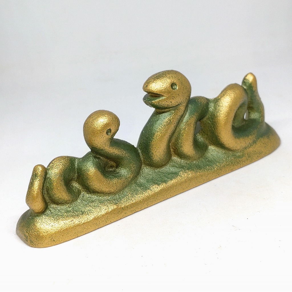 - 高岡鉄器 文鎮 蛇の親子 W11.5×D2.5×H4.3cm 重量約250g 干支 置物 未使用保管品 【5181】