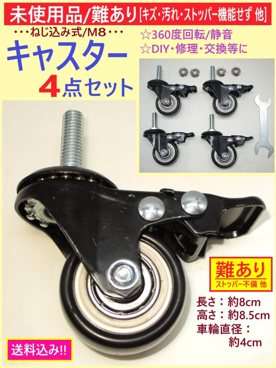 - 難あり 未使用 ねじ込み式 M8 キャスター 4点セット G ストッパー不備 キズ ネジ径 8mm 360度 回転 静音 車輪 径 4cm 交換 修理 DIY 海外製