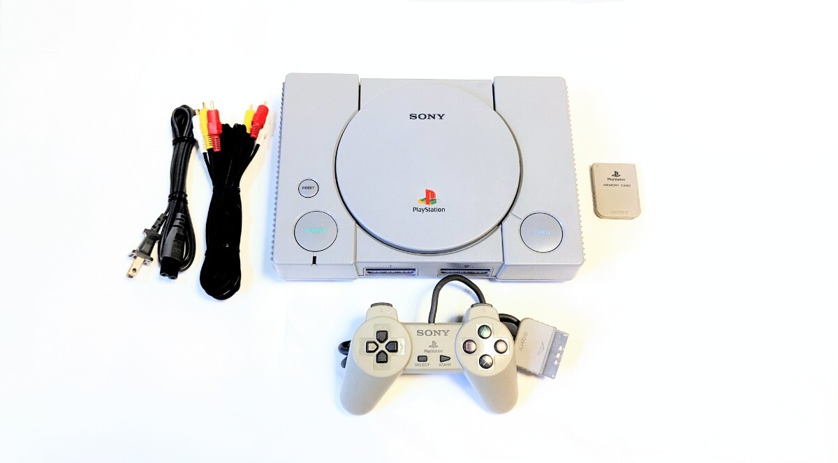 - 動作品・清掃済み★SONY PS1 初代 RCA端子搭載モデルプレイステーション「SCPH-3500」 本体・純正コントローラ・AVケーブル・純正メモリー