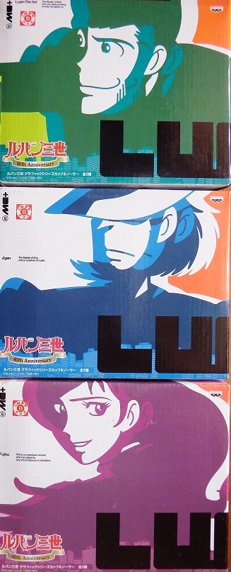 - バンプレストのプライズ品3種セット◆モンキー・パンチさん原作「ルパン三世 グラフィックシリーズカップ&ソーサー」 未開封品です