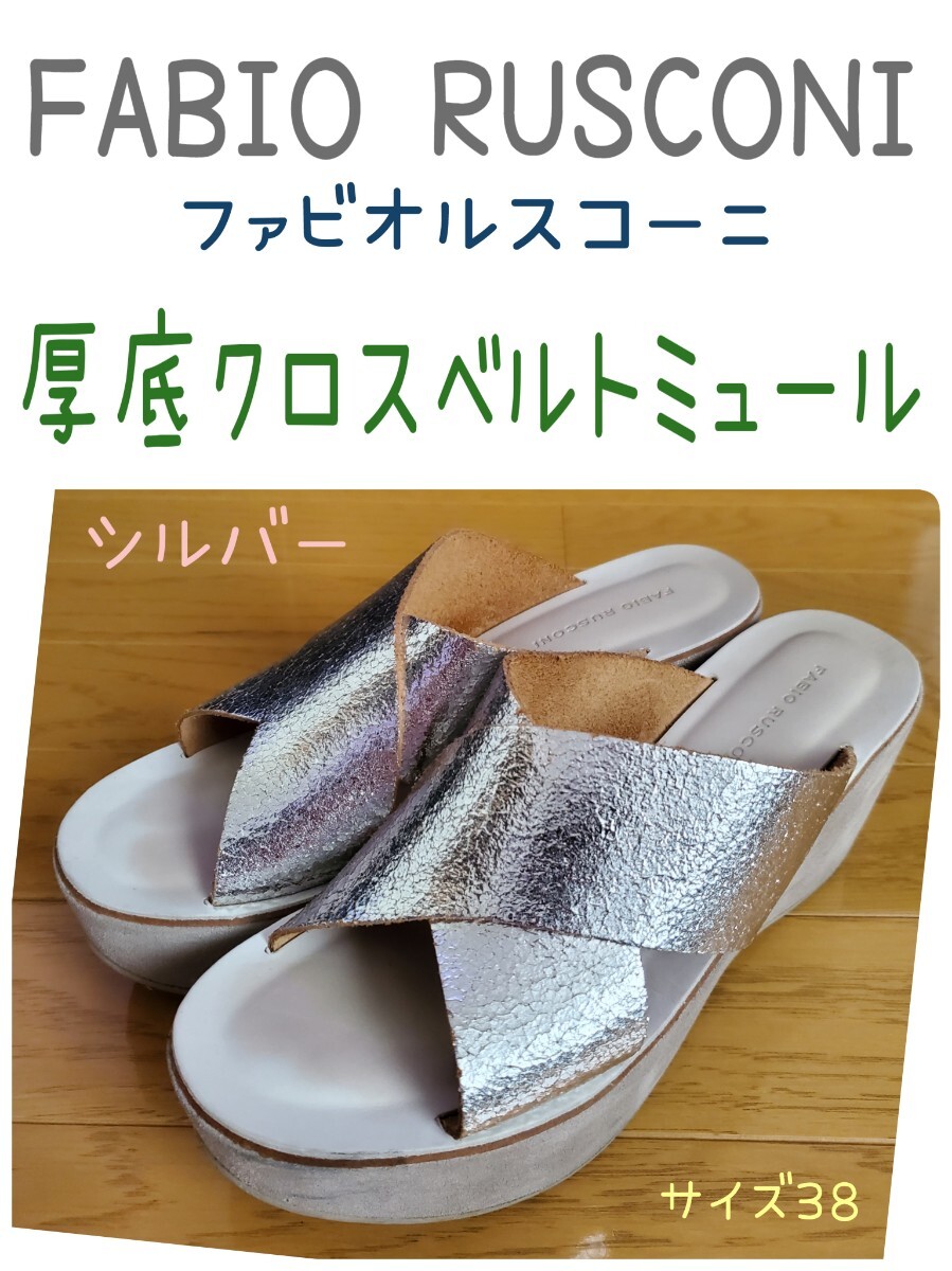 - 送料無料★FABIO RUSCONI ファビオルスコーニ 厚底 本革クロスベルトミュールサンダル MADE IN ITALY