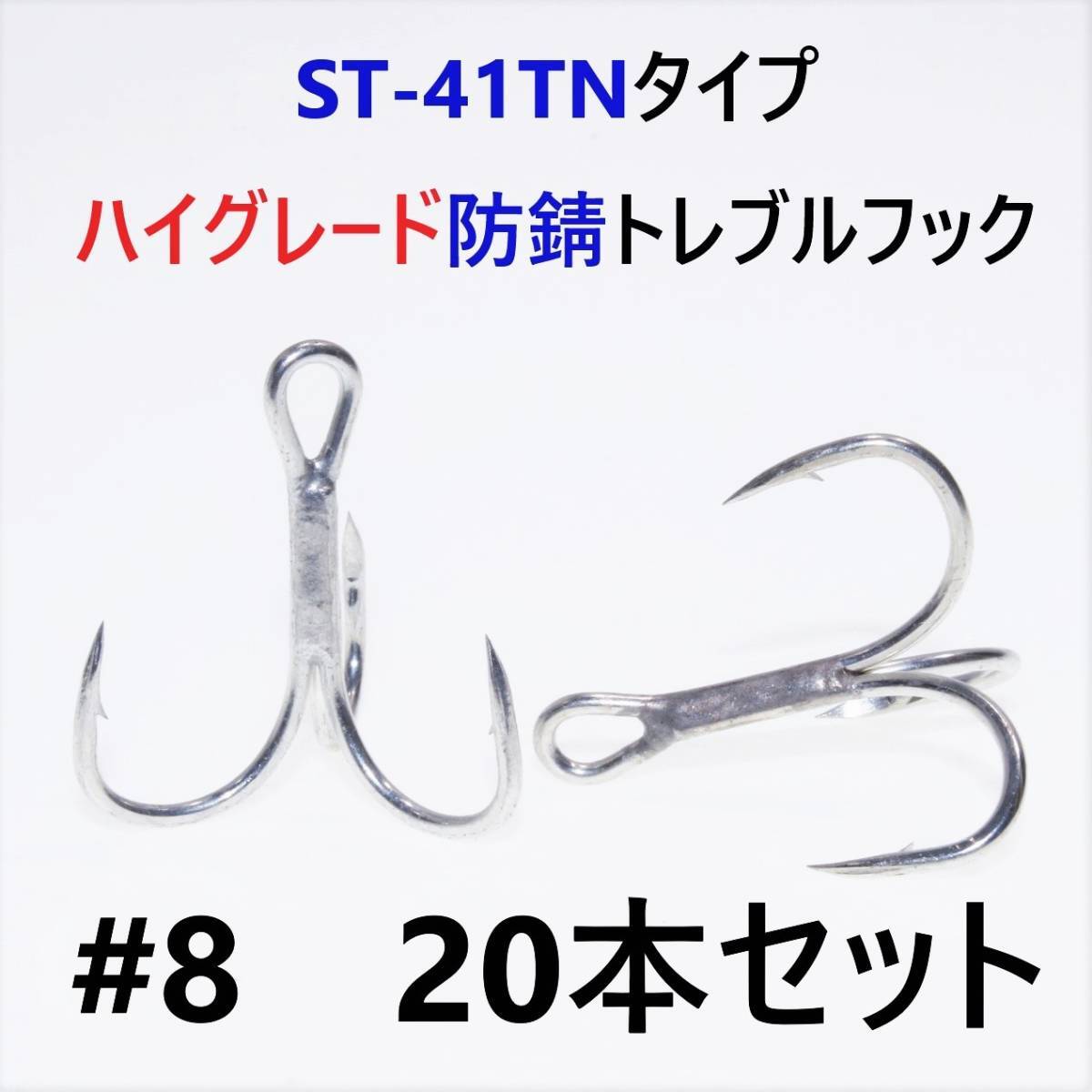 - 【送料150円】ST-41TNタイプ#8 20本セット 高品質ハイグレードトレブルフック トリプルフック ST-46好きに