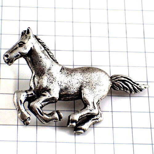 - ピンバッジ・疾走する馬ギャロップ銀色シルバー◆フランス限定ピンズ◆レアなヴィンテージものピンバッチ