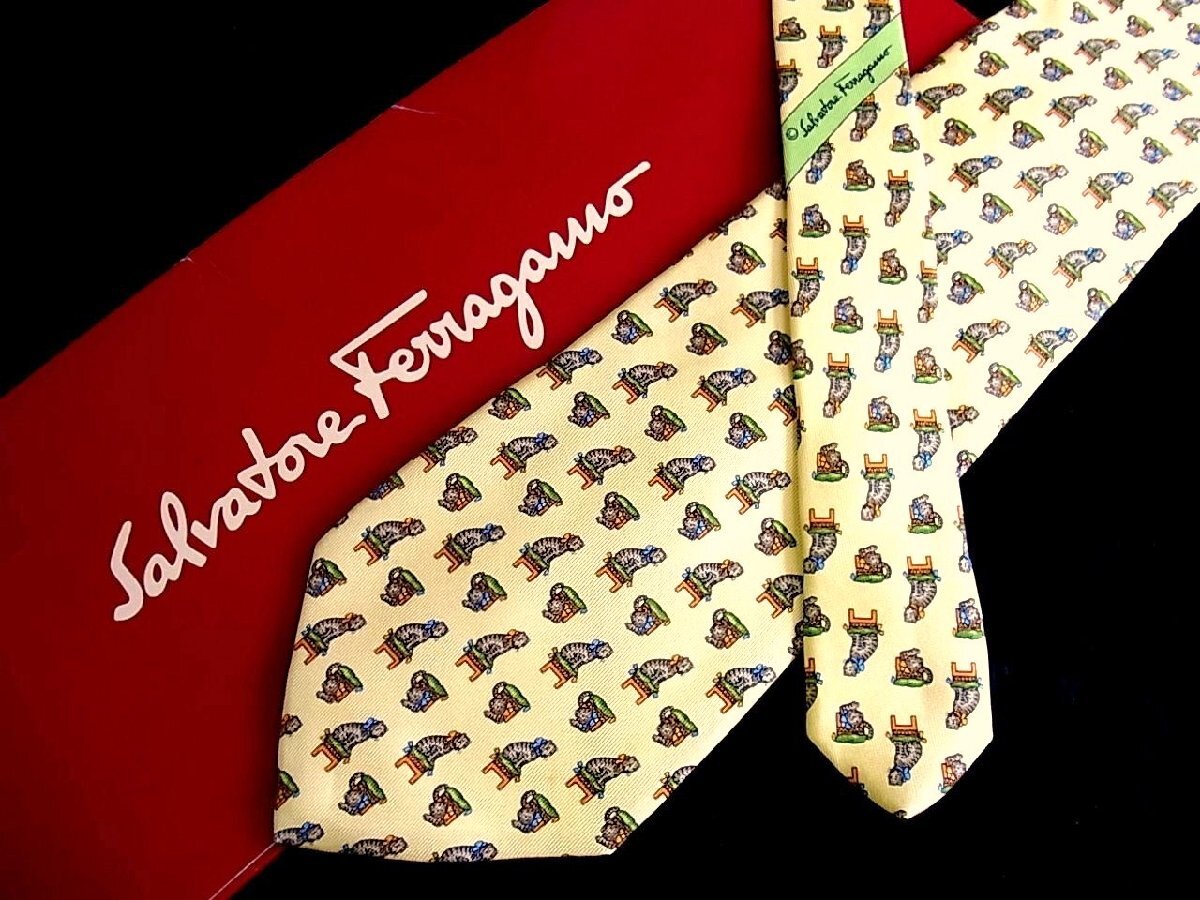 - ♪今週の特売980円~♪4009♪良品【FERRAGAMO】フェラガモ【猫 ネコ 動物 柄】ネクタイ♪