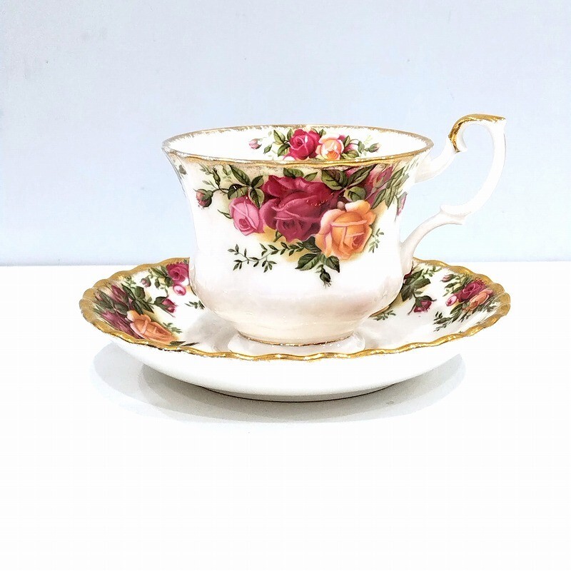 > ロイヤルアルバート(ROYAL ALBERT) オールドカントリーローズ カップ&ソーサー シングル レッド 【中古】 JA-19811