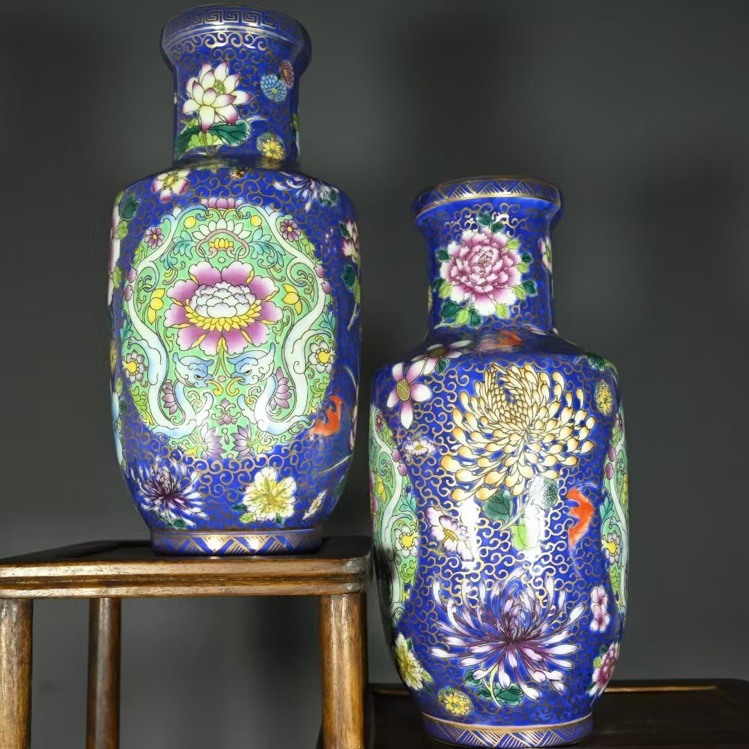 > 磁器 花瓶 秘藏 大清乾隆年製エナメル蒔絵金景泰藍花卉紋宝瓶 酒器 茶器 唐磁 染付 陶磁器 收蔵品 古美味 時代物 古美術古置物 中國文玩7.3