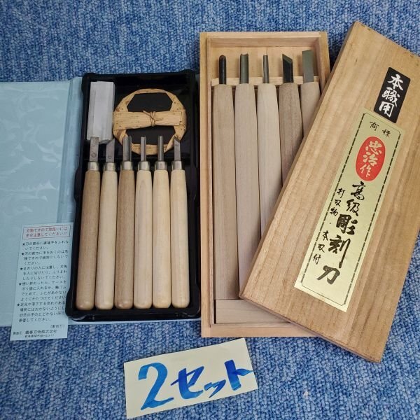 - 【アウトレット品】 マルイチ 忠治作 彫刻刀 5本組 6本組 2セット 本職用 打刃物 本刃付 ハンドクラフト 手工芸 木工 版画 sp-031-444