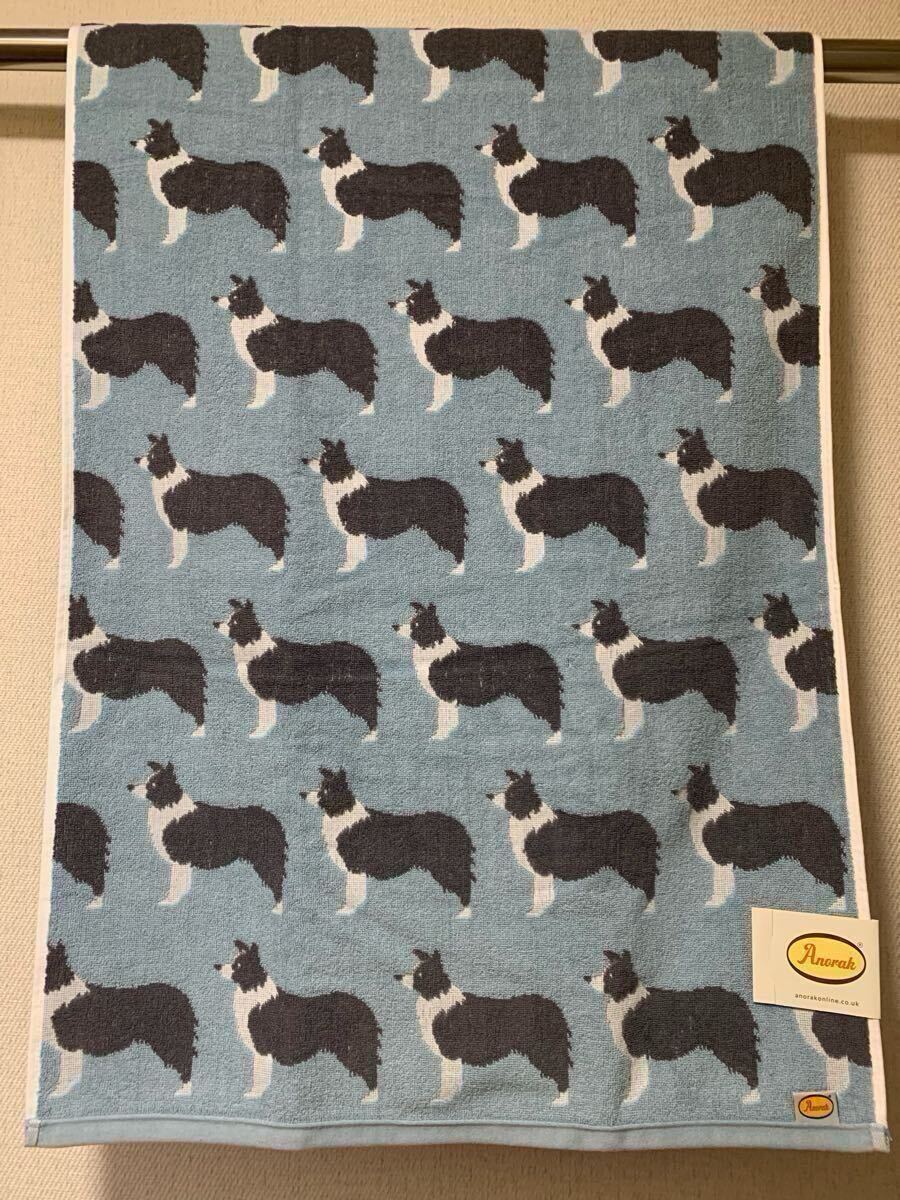 - 丸眞 ANORAK アノラック バスタオル コリーズ ポルトガル製 60×120 北欧 犬柄 ボーダーコリー 水色 厚手 タオル