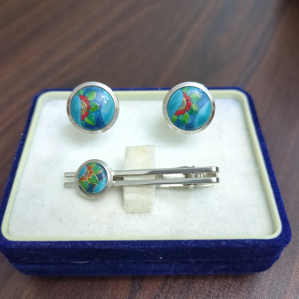 - 陶芸 花柄 カフス ネクタイピン セット