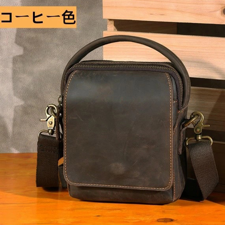 - 本革 ショルダーバッグ メンズバッグ レザーバッグ 斜めがけ メッセンジャーバッグ ワンショルダーバック 2WAYバッグ bg0783 コーヒー色