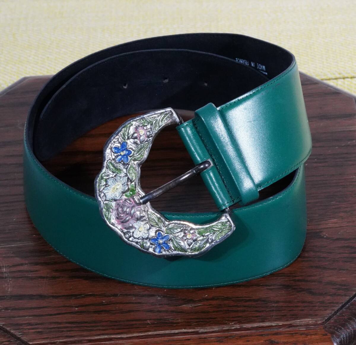 - フランス製 L’AIGLON レグロン ベルト レザー ボタニカルバックル