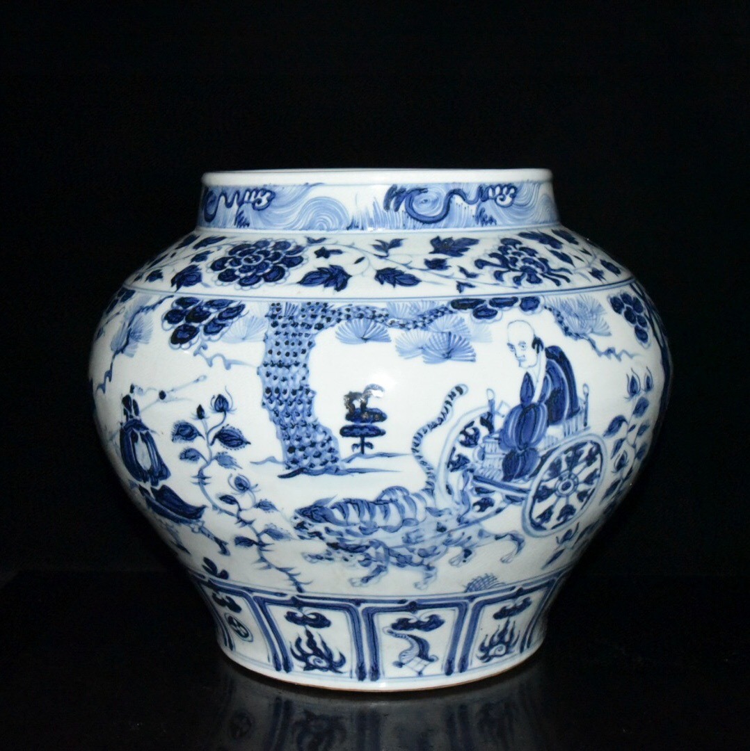 > 『館蔵珍品 元 古陶瓷品 青花 鬼谷下山紋罐 陶藝』稀少珍蔵品 古賞物 貴重物品 収蔵品 中国古美術 時代物 古董品