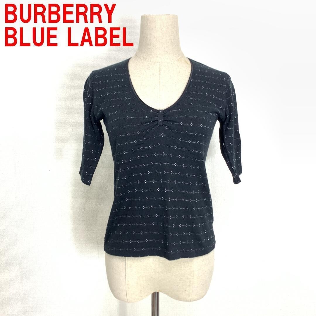 > A3269 バーバリーブルーレーベル 半袖カットソー 綿 BURBERRY BLUE LABEL コットン ブラック Vネック 総柄 黒 M
