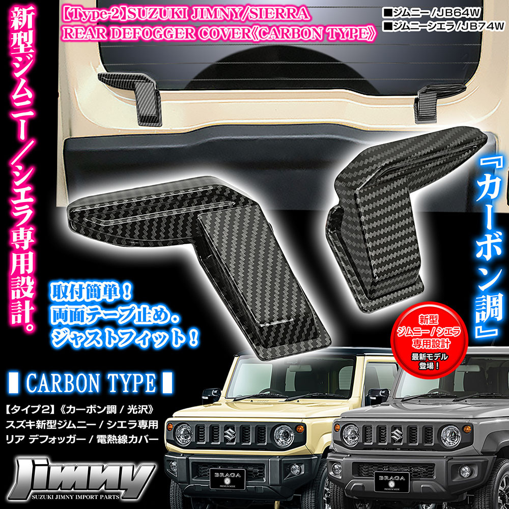 - タイプ2/スズキJB64W/74W新型ジムニー/シエラ用 リア デフォッガー/電熱線 配線 カバー/カーボン調/光沢/左右セット/ABS樹脂製/ブラガ