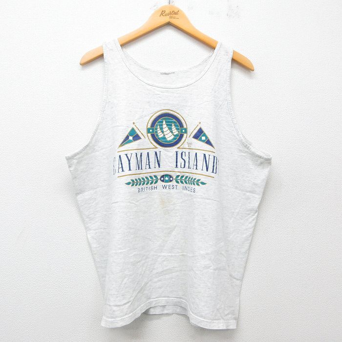 - XL/古着 ビンテージ タンクトップ メンズ 90s CAYMAN ISLANDS 大きいサイズ クルーネック 薄グレー 霜降り 25jun30 中古