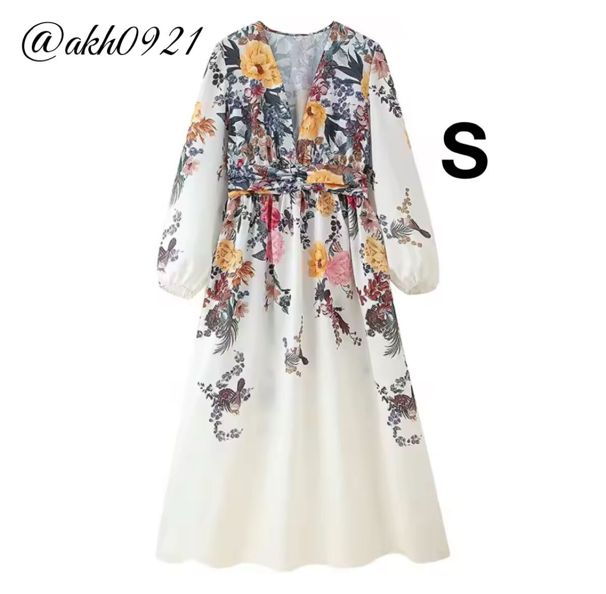> 新品未使用★2025 S/S 夏新作★vintage ヴィンテージ フラワー 花柄 Vネック ロング ワンピース Sサイズ レディース ZARA好きな方に