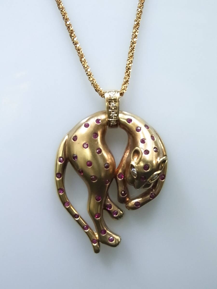 > K18 ルビーダイヤ ペンダントネックレス パンサー USED D0.06ct 19.3g 約50cm 仕上げ済み