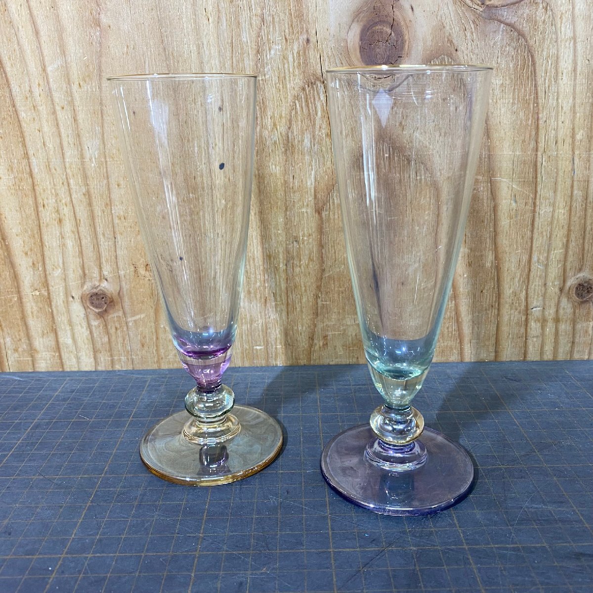 - 【18217Q044】シャンパングラス 2点 embrasser アンブラッセ グリーン×パープル ピンク×オレンジ カクテルグラス ペア お酒 コップ