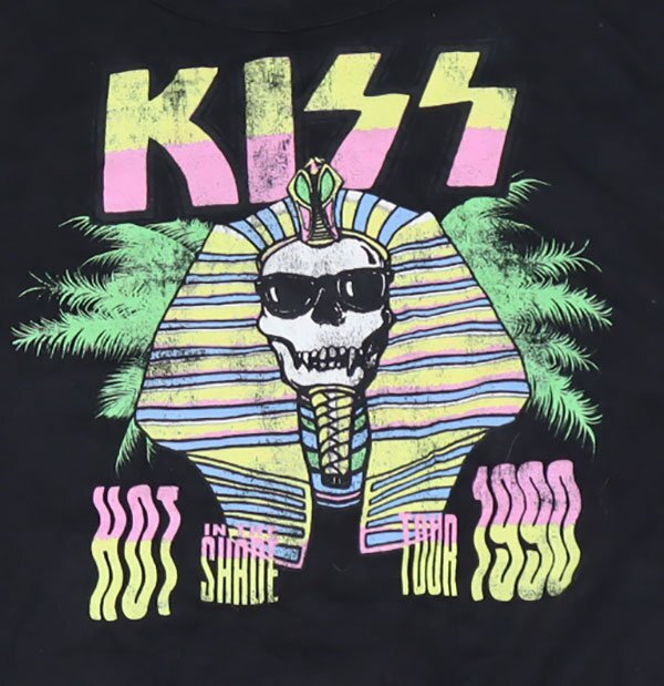 - ST2キッスKISSアメリカ古着バンドTシャツHOT SHADE TOUR1990復刻ツアーTシャツ黒系TシャツS/MミュージシャンTシャツ両面プリントTシャツ